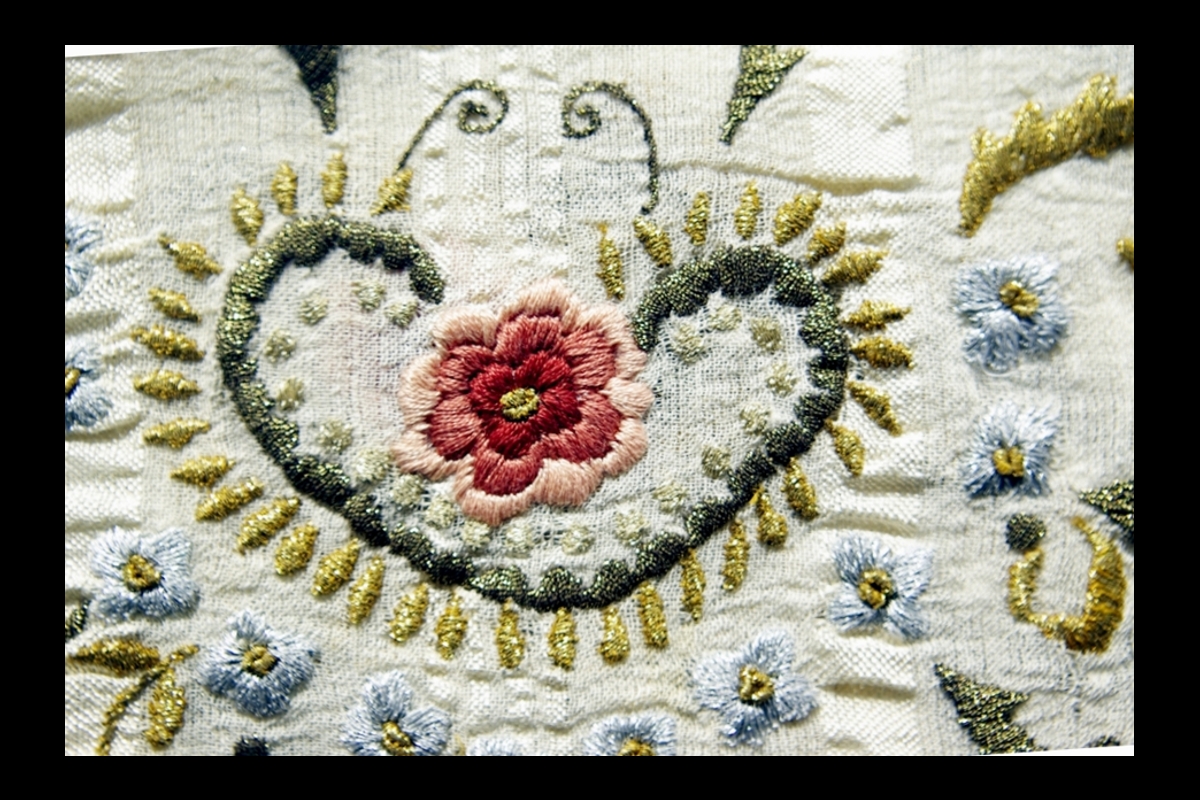 Σεμέν υφαντό κεντημένο με χρυσή τρέσα στο τελείωμα