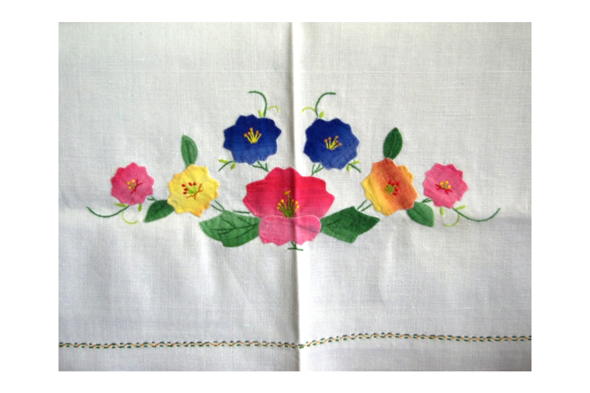 Τραπεζομάντηλο βαμβακερό τετράγωνο με κέντημα μηχανής apliqué